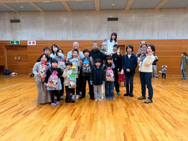 募金のあとは体育館でのお楽しみ会。レクリエーションと沢山のお菓子でご満悦です。