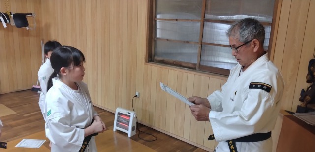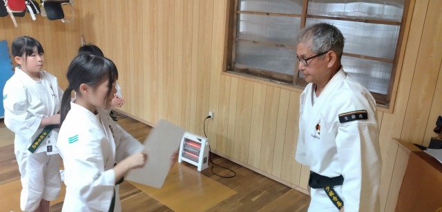 本日、専有道場におきまして、2月度昇級考試に合格しました、3名の少年部拳士に宮本道院長から合格証書が授与されました。まずは、4級に合格したT拳士です。